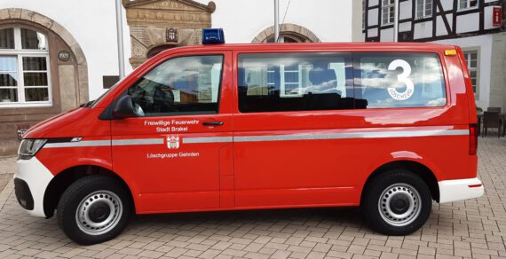 Mannschaftstransportfahrzeug Funkrufname: Florian Brakel 08 MTF-1 Fahrgestell: Volkswagen T6.1 Ausbau: Fa. Seibert Brakel Baujahr: 2020 Leistung: 150 PS Gewicht: 3080 kg Besonderheiten:AnhängerzugvorrichtungSondersignalanlage mit DurchsagemöglichkeitKommunikationseinrichtung für Abschnittsleitung