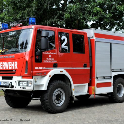 Tragkraftspritzenfahrzeug mit Wassertank Funkrufname: Florian Brakel 05-TSFW-1 Fahrgestell: Iveco Eurocargo Aufbau: Iveco Magirus Baujahr: 2008 Leistung: 180 PS Gewicht: 7490 kg Wassermenge: 750 Liter Besonderheiten: Stromerzeugertragbarer Beleuchtungssatzelektro-SäbelsägeMotorkettensägeMittelschaumpistoleSpineboard