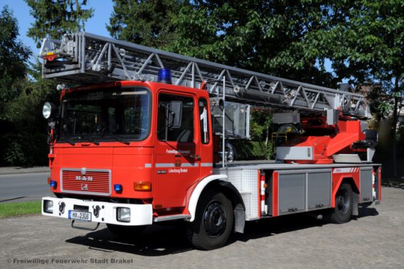 DLAK23 – Drehleiter 23/12 mit Rettungskorb Funkrufname: Florian Brakel 01-DLK23-1 Fahrgestell: MAN Aufbau: Metz Baujahr: 1985 Baujahr: 2004 (Fahrzeug war zuvor bei der Feuerwehr Berlin im Einsatz) Ausserdienst: 2019 Leistung: 190 PS Gewicht: 14.000 kg Besonderheiten: 2 Sätze „Absturzsicherung“Wendestrahlrohr2 Flutlichtstrahler (je 1000W)KrankentrageaufnahmeSchleifkorbtrage5 kVA StromerzeugerKettensäge, elektrisch