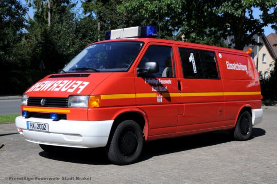 Einsatzleitwagen 1 Funkrufname: Florian Brakel01-ELW1-1 Fahrgestell: Volkswagen T4 mit langem Radstand Aufbau: eigen Baujahr: 1996 Leistung: 78 PS Gewicht: 2700 kg Besonderheiten: D-Netz-MobiltelefonLTE-InternetverbindungLaptop mit Drucker/Fax/Kopierer2,2 kVA StromerzeugerGaswarngerätdiv. Funkgeräte (analog/digital, Festeinbau, Mobil, EX-geschützt,…)Türöffnungswerkzeug Zieh FixMaterial zur LagedarstellungAED DefibrilatorNotfallkoffer