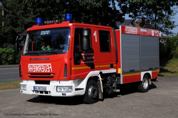 Tragkraftspritzenfahrzeug mit Wassertank Funkrufname: Florian Brakel 05-TSFW-1 Fahrgestell: Iveco Eurocargo Aufbau: Iveco Magirus Baujahr: 2008 Leistung: 180 PS Gewicht: 7490 kg Wassermenge: 750 Liter Besonderheiten: Stromerzeugertragbarer Beleuchtungssatzelektro-SäbelsägeMotorkettensägeMittelschaumpistoleSpineboard