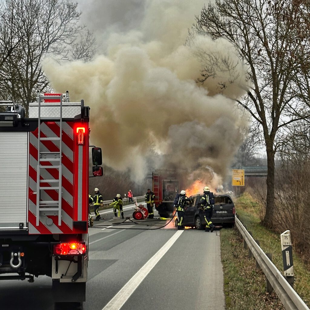 Am Mittwoch Nachmittag brannte auf der B252 bei Brakel ein PKW. Das Feuer war schnell gelöscht, die Insassen konnten das Fahrzeug rechtzeitig und unverletzt verlassen.
