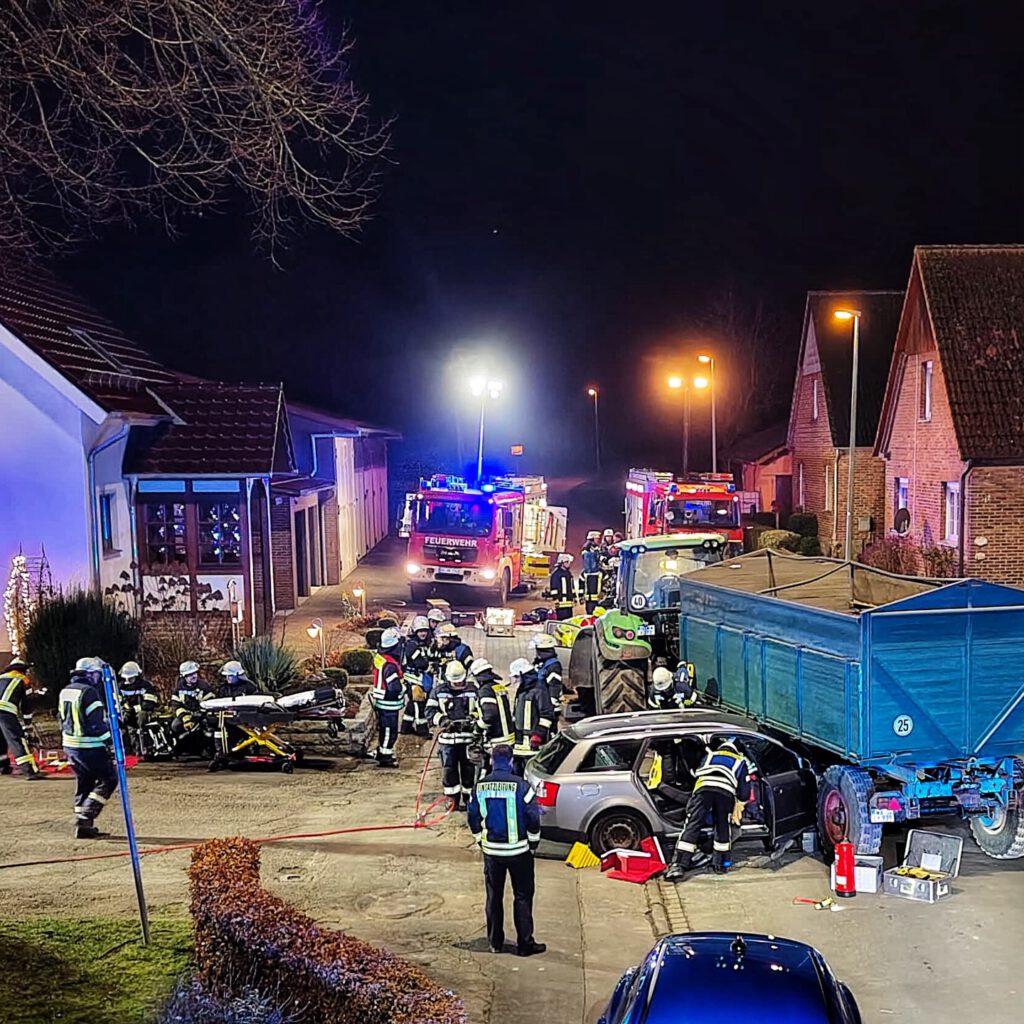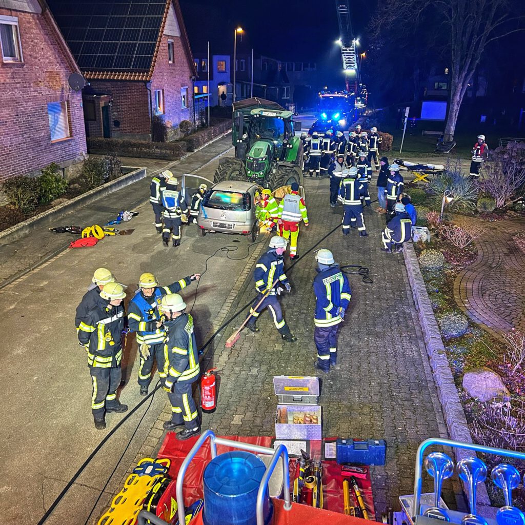 Kaum war der Brand am Nachmittag abgearbeitet, ging es weiter zur Jahresabschlussübung des Löschzuges 1 in Bökendorf. Hand in Hand arbeiteten die Kräfte aus Bellersen, Bökendorf und Brakel eine Einsatzstelle Verkehrsunfall mit landwirtschaftlicher Maschine und PKW ab. Übungen sind die beste Vorbereitung für die realen Herausforderungen unserer Feuerwehr.